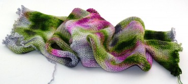 Natürlich kann man mit ihr auch tolle Tücher oder Schals stricken, aber auch wenn die Sockenwolle aus dem Atelier Zitron die weicheste ist, die ich je in der Hand hatte, es ist Sockenwolle und kann niemals so kuschelig, wie eine Merinowolle sein.