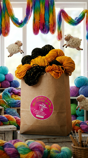 Was drin ist? Sockenwolle, der Rest bleibt geheim! Ob kräftig, pastellig, wild gemustert oder sanft gesprenkelt – jedes Päckchen ist ein kleines Abenteuer aus Farben und Garn. Ideal für alle, die sich gern überraschen lassen und Lust auf neue Farbkombis haben!